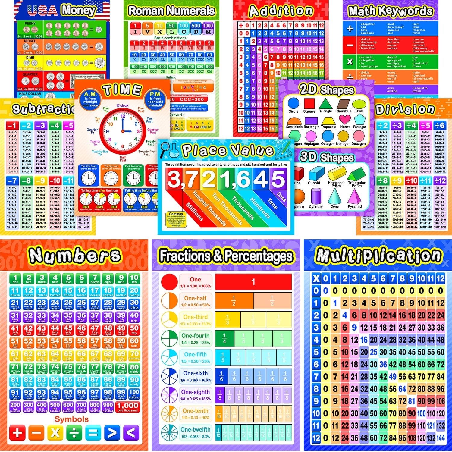 A great product, bought for homeschooling during lockdown. I thought they were poster size for the wall. However they are only A3 size. This is actually better as they can be used as placemats to help learning instead. They are laminated and will be long lasting. Not sure how useful the American money poster will be but the rest are fantastic and just what we needed. Very glad I bought them.