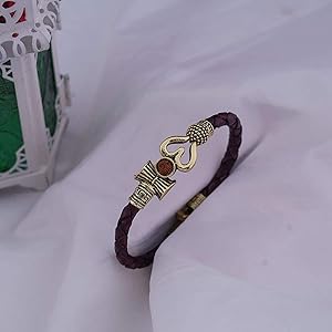 genericTrishul Damru Om Rudraksha Gold Plated, Metal & Alloy Mahadev Mahakal Shiva Bhakt Bahubali Navaratri Special Unisex Adult Kada Bracelet (Brown)
