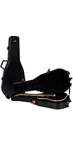 The Gator Cases Molded Flight Case is a TSA-approved, military-grade protective case designed specifically for dreadnought acoustic guitars. Featuring a rugged polyethylene shell, secure locking latches, and a plush EPS foam interior with an extended neck cradle, it offers superior protection and comfort for air travel. Crafted and supported in the USA, this case is a top choice for touring musicians who demand durability, security, and style.
