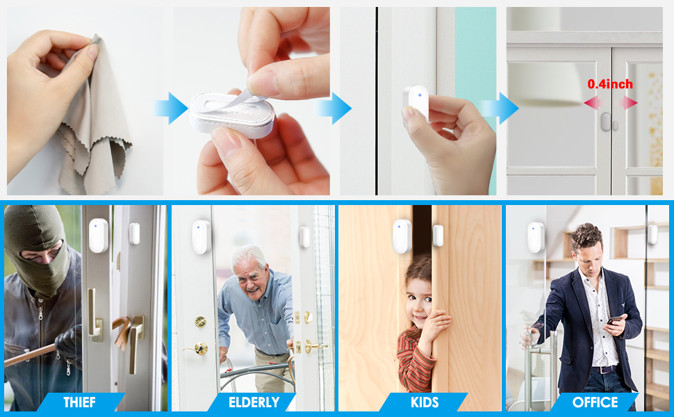 The PHYSEN Wireless Door Alarm Sensor system features 2 magnetic sensors and 1 plug-in receiver with a 500ft wireless range. It offers 58 customizable chimes and 5 volume levels up to 110dB, including mute mode. Easy to install with self-adhesive sensors and a plug-in receiver, it includes LED indicators for visual alerts and supports expansion with additional sensors. Perfect for home, office, or warehouse security with a 1-year warranty.