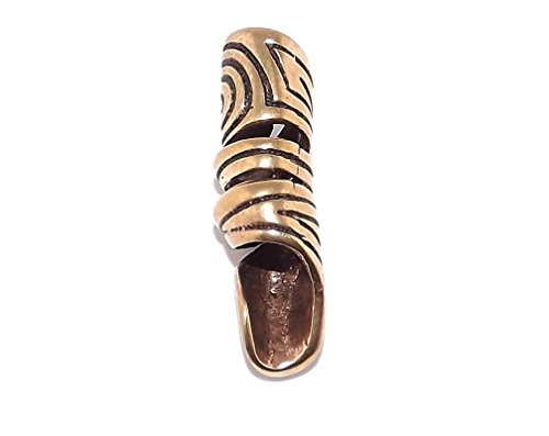 Spirals Viking Celtic Beard Bead Made from 100% Bronze (not plated bronze). Your beard goes down the middle of the tube. You get one bead, image shows different views. Size: 3.2cm x 1cm (weighs 5g) Inner hole size is 6mm across. If you want to see how to put this on a beard you-tube the phrase "How to put beard beads on". This can also be used on dreadlocks. This is a simple tube, it does not open or close - you just thread hair/beard through it and then tie a knot etc to stop it falling out.
