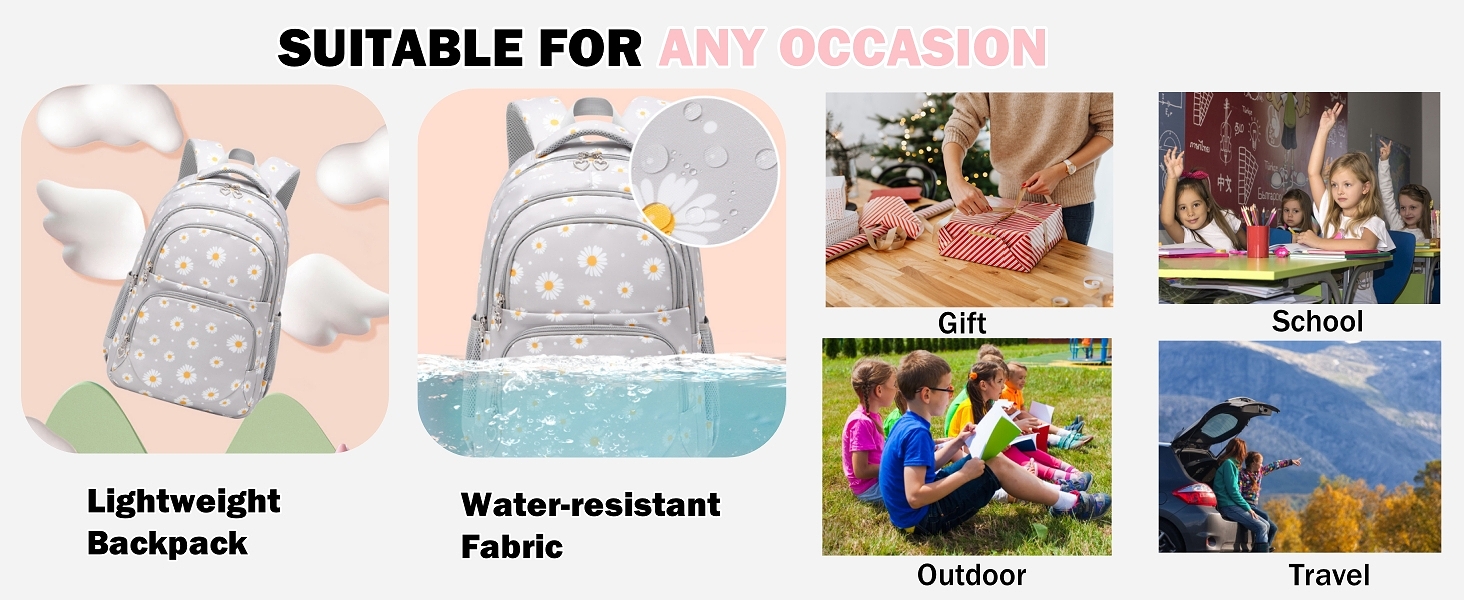 Daisy Prints Girls School Bag Children Backpack for Teens Elementary Causal Daypacks with Lunch Bag