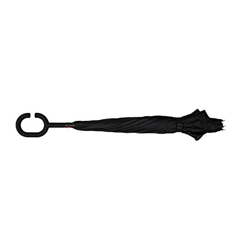 New Reverse Umbrella - A breakthrough in umbrella design. This inverted or reverse umbrella opens inside out leaving the wet side of the canopy contained on the inside making it dry to handle. Rather than creating pools of rainwater when it is put away the reverse umbrella folds the opposite way, collecting drips inside it. This fantastic umbrella opens and closes in confined spaces. Getting into your car, you can close the canopy down into the gap of a car door, whilst remaining dry and the water stays inside of the umbrella and doesn't get the car seat or floor wet. As you open the reverse umbrella it opens up over the user and is great for keeping dry whilst getting out of the car and solves the problem of poking passers-by in the head with an umbrella's spokes because it opens from the top rather than the bottom. The double canopy and flexible fibreglass frame make this novel umbrella wind resistant*, sturdy and durable. This reverse umbrella is not only great for your car; it also makes a great gift idea for friends and family. * Please use caution in strong winds as wind damage does not constitute a faulty frame. However if your umbrella does invert please simply close in the normal way and re-open to restore your umbrella to its original shape.