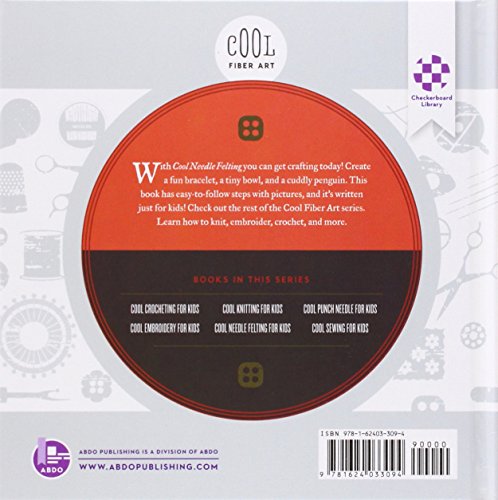 Learn about the basics of fiber arts while creating cool stuff. The Cool Needle Felting for Kids title teaches the first steps of how to needle felt. Activities will help kids use what they learned to make a fun bracelet, a tiny bowl, a cuddly penguin and more. Custom how-to photos and easy step-by-step instructions make crafting a blast. Dont wait to get cool crafting! Aligned to Common Core Standards and correlated to state standards. Checkerboard Library is an imprint of Abdo Publishing.