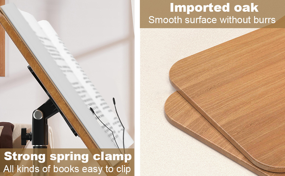 The aleawol Wood Book Stand combines durable oak craftsmanship with a sturdy carbon steel frame, offering adjustable height (80-130cm) and a full 180° angle rotation. Equipped with strong page clips that hold books up to 6cm thick, it ensures ergonomic comfort and versatile use across reading, drawing, and tablet holding scenarios. Lightweight and tool-free assembly make it ideal for professionals seeking both style and practicality.