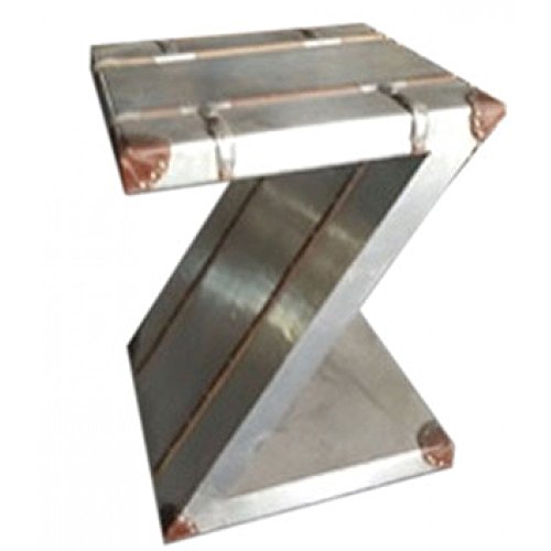 This steampunk furniture is covered in a durable aluminium coloured metal with an aged soft sheen for an iridescent look. Leatherette bound and studded with wooden straps in the style of vintage travelling furniture.