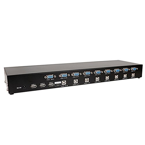 Note: -Due to product upgrading, the kvm switch is without power adapter, the power is supplied by keyboard through computer. -It needs the VGA USB cables (Not included) to connect to the computer, you need to buy the cables. Description: The MT-801UK 8-Port USB KVM(801UK) Switch is a moutable control unit that allows users to access eight computers from a single KVM console (keyboard and mouse, audio and VGA monitor). Features: With the 801UK, you can access computers conveniently using port selection pushbuttons located on the unit's front panel. One VGA console controls 8 USB VGA interface computers. Computer selection via front panel pushbuttons. Superior video quality - 1920 x 1440. Supports USB hot-plugging. Non-powered. Supports DOS,Win3.X, Win95/98/98SE/2000/ME/XP,WinNT,Netware,Unix,Linux. Support USB 2.0 Dimension(L*W*H):43cm*14cm*5cm/16.93'' x 5.51'' x 1.97''.