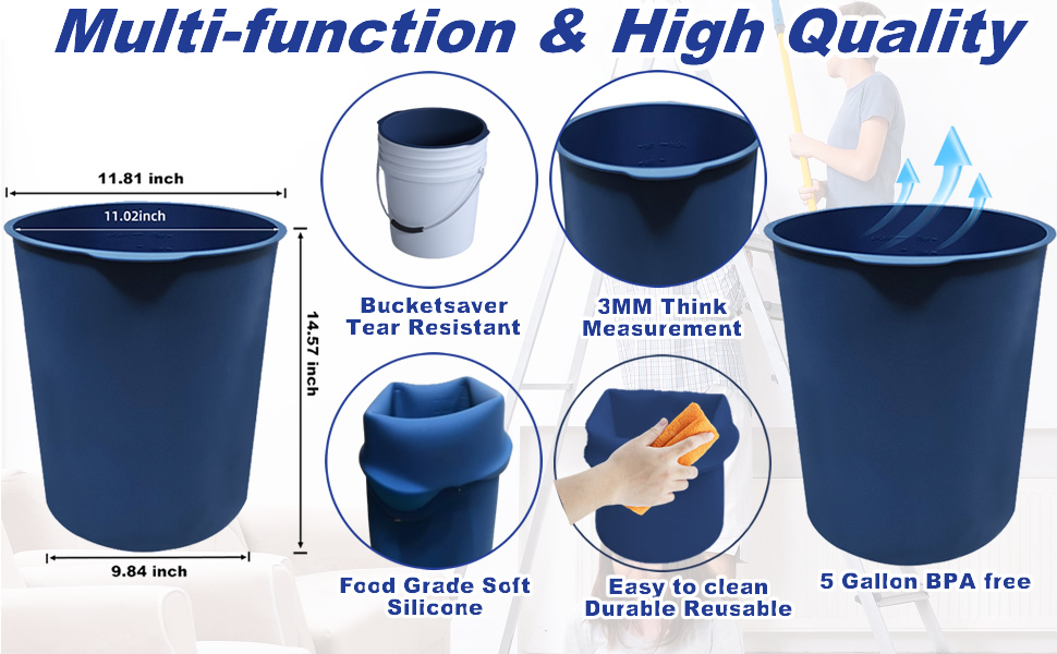 AFVLO 5 Gallon Silicone Bucket Liner for Concrete Mix and Mud. 5-Gallon Reusable Silicone Bucket Protection with Measurement Markings