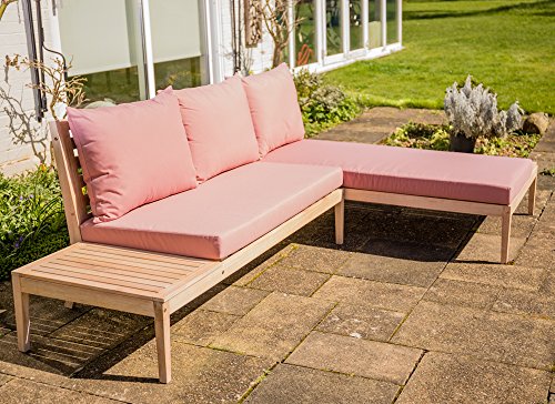 The Wareham wooden garden set is a luxury collection made from solid hardwood. This listing comes with plump, thick cushions ideal for those seeking a relaxing outdoor space with a designer aesthetic. This product is constructed from an ethically-sourced hardwood called eucalyptus, one of the most sustainable wood species on Earth. This set has been specifically for outdoor use; its thick wood components give the product the stability and strength to stand up to the forces of Mother Nature. Conforms to BS5852: Part 1:1979 Specifications Height: 79cm (2ft 7in) Width: 265cm (8ft 8in) Depth: 163cm (5ft 4in) What's in the box? x1 Wooden corner sofa set x1 Wooden corner sofa set cushions