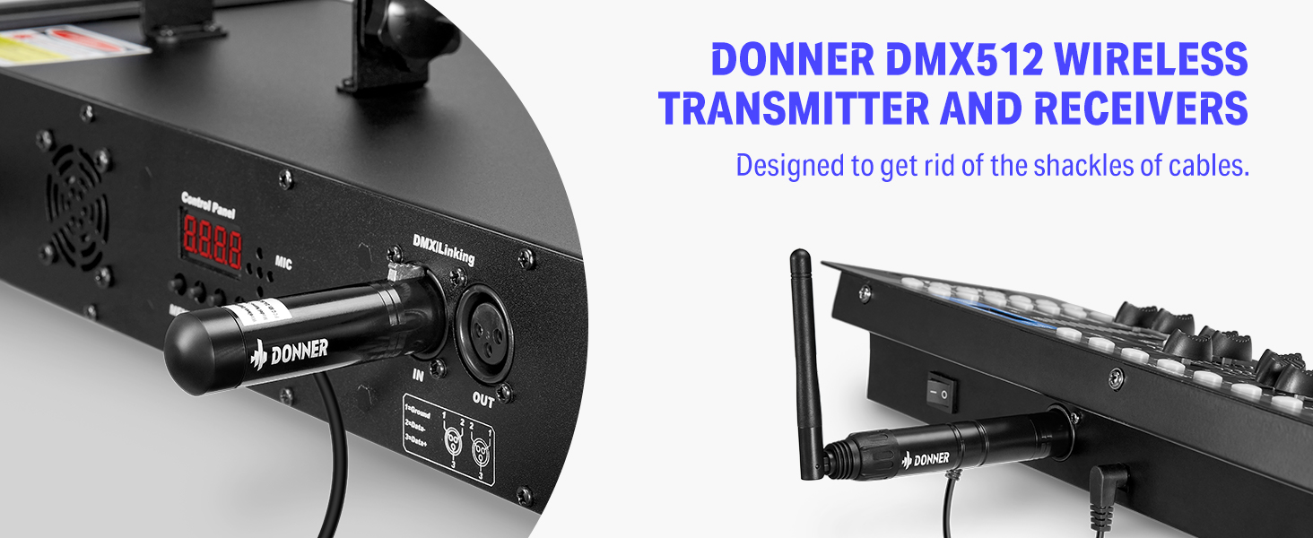 The Donner DMX512 Wireless Controller is a cutting-edge solution for stage lighting control, featuring a transmitter and five receivers that operate seamlessly without wires. With a communication range of 500 meters and the ability to set up 7 individual wireless networks, this system ensures reliable and interference-free operation. Perfect for DJs, bars, and parties, it supports standard DMX512 protocol data transmission and is designed for high efficiency with 126 channels.