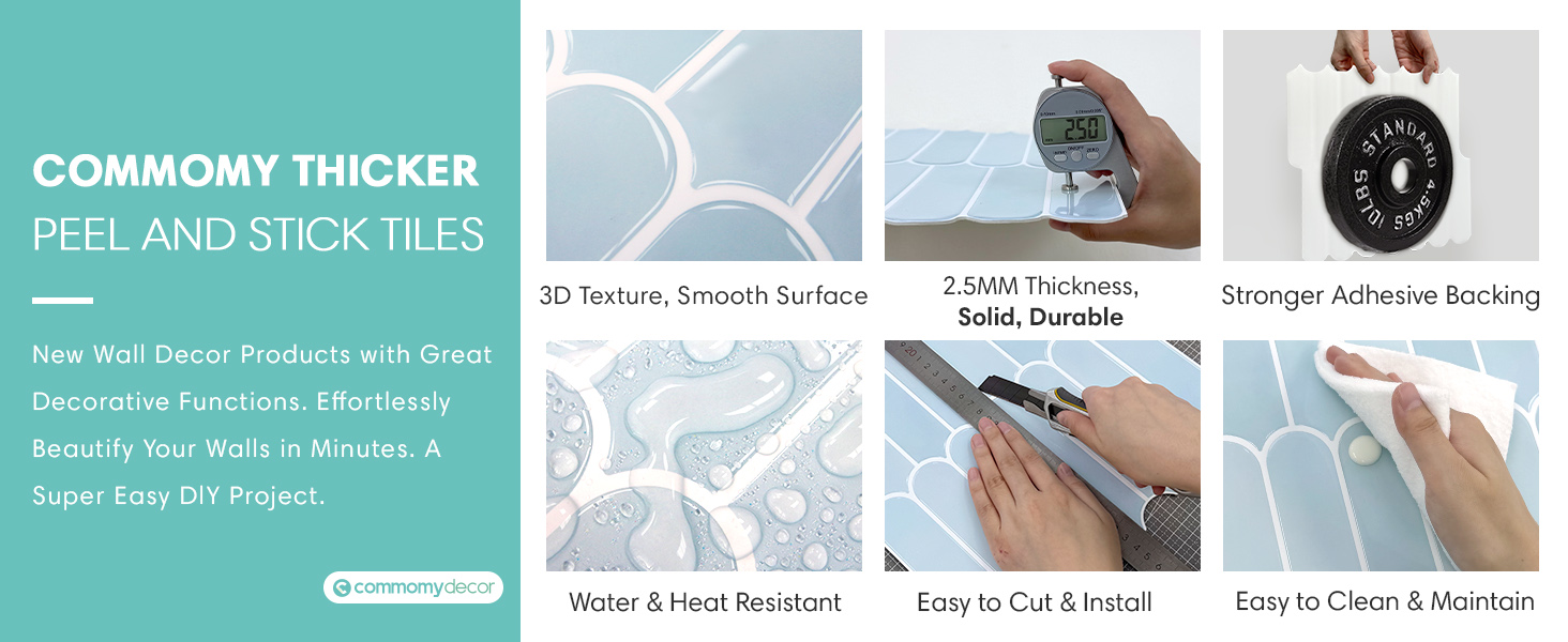 The Commomy Thicker Blue Peel and Stick Backsplash offers a modern, stylish solution for home decor with its 2.5 mm thick, durable vinyl tiles. Designed for easy installation, these waterproof and heat-resistant tiles are perfect for kitchens, bathrooms, and various living spaces, making them an ideal choice for both renters and homeowners looking to enhance their interiors effortlessly.