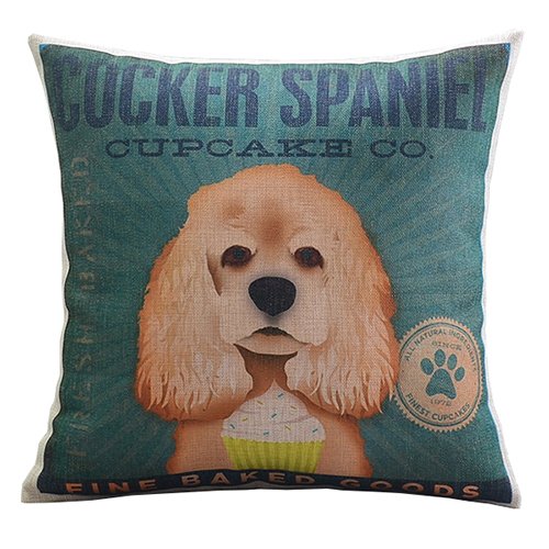 Createforlife Cotton Linen Square Decorative Throw Pillow Case Cushion Cover Retro Creative Cocker Spaniel Dog 18"
