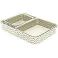 The CURVER Basket is a stylish and functional storage solution, measuring 35.2 x 26.8 x 7.4 cm and weighing only 240 g. Made from durable plastic, it offers a capacity of 4.5 litres, making it ideal for organizing your office or bathroom essentials. Its modern design, inspired by the nostalgia of knitted textiles, ensures it fits seamlessly into any decor while being easy to clean and portable.