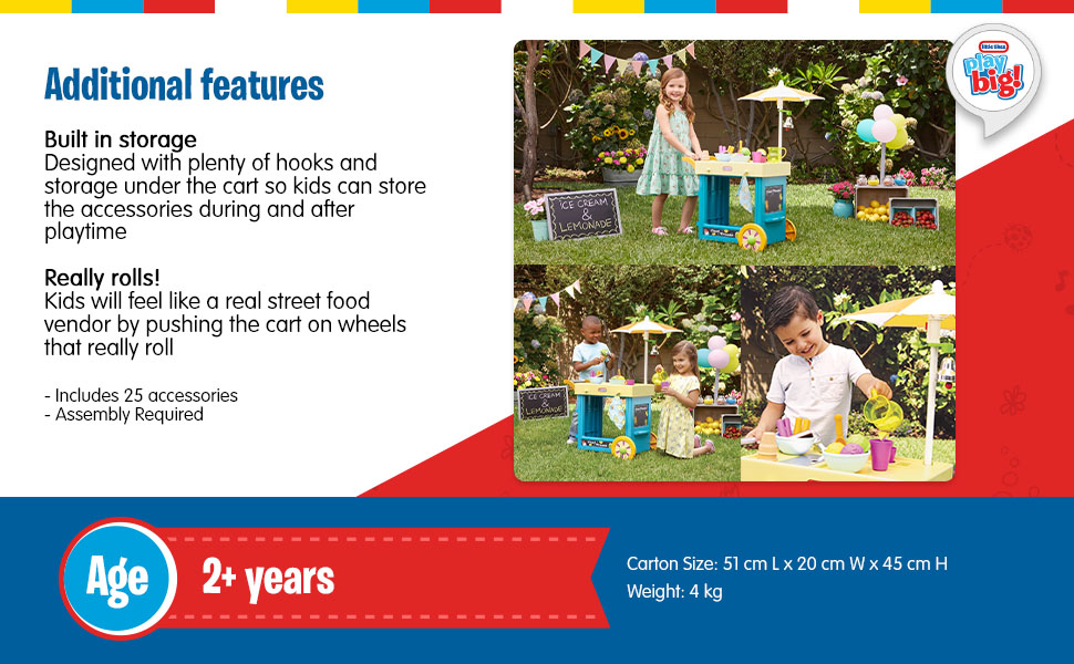 The Little Tikes 2-In-1 Lemonade and Ice Cream Stand is an interactive playset designed for kids aged 36 months to 10 years. It features 25 accessories, including a chalkboard for personalized menus, and offers two engaging play modes. With a pushable cart that rolls and a built-in storage solution, this playset encourages creativity and organization, making it a perfect addition to any child's playtime.