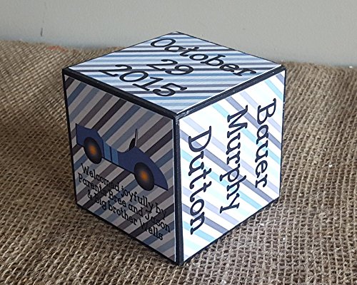 Personalize your baby's birth stats on this 6 sided cedar wood cube. Each cube side measures 3". This custom baby keepsake will make a special gift for the new baby in your life. A wonderful gift idea for special occassions such as baptism, new baby shower or birthdays.