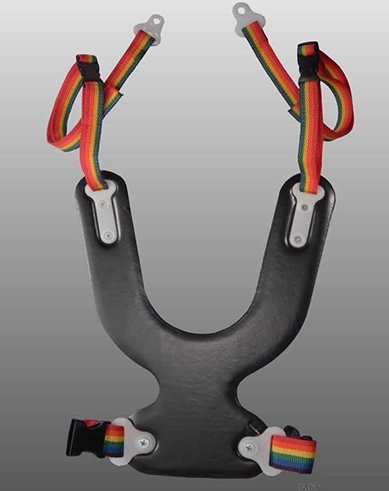 Wefve created a core of moldable material and surrounded it with soft foam to create a comfortable chest support that can be formed to follow your body contours. There are strap attachments on the Yokes for wheelchairs, travel chairs, and strollers. The lap belt has pivot mounts for optimal adjustability. Sizes: (measure seated shoulder to hip) X-small: 8"-10" Color Tan.