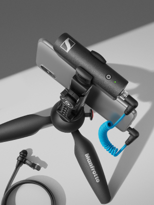 The Sennheiser XSW-D Portable Lav Mobile Kit is a sleek, all-in-one wireless lavalier microphone package designed for smartphone and camera content creators. Featuring pre-paired components, automatic interference management, and essential accessories like the Manfrotto PIXI Mini Tripod and smartphone clamp, it delivers professional-grade audio with effortless setup and durable aluminum build—all powered by a rechargeable Lithium-Ion battery for reliable, on-the-move recording.