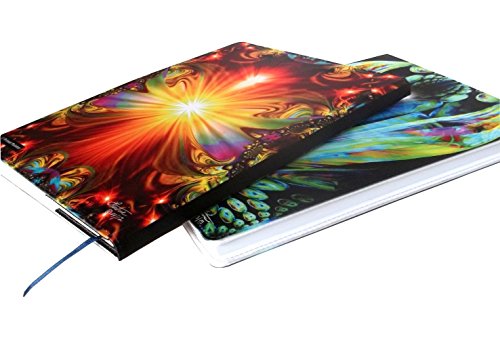 "World's Within World's" is a purple and teal colored art sketchbook in my new line of reiki healing art journals, notebooks and sketchbooks. Measuring 12" x 9", this colorful reiki infused folio style blank notebook is an eye catcher! My thought is that it can be used as an art journal or sketchbook, writing or sketching your hopes and dreams, your aspirations, your thoughts, and your intentions... a Book of Light. Of course you could also use it for note taking, lists, and reminders and that's ok too, just not as fun! "Worlds Within Worlds" - The third eye or sixth chakra is purple. The sixth chakra is about tapping into our intuition and "seeing" with our inner eye. The purple and teal swirls indicate the many levels of reality that I believe exist just beyond the scope of our current awareness.