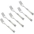 The MGeezz Stainless Steel Fork Spoons Set includes 6 small forks and ceramic-handled spoons, designed for both everyday use and special occasions. Made from food-grade stainless steel, this set is dishwasher safe and features a mirror finish for easy cleaning and a sophisticated look. Perfect for gifting or enhancing your dining experience.