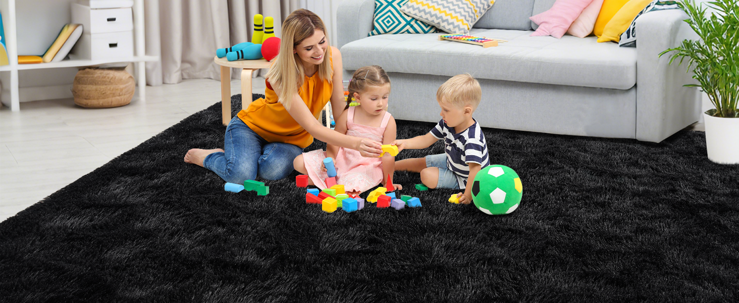 ChicrugSoft Area Rugs for Bedroom Living Room Plush Fluffy Rug 6x9 Feet, Shag Furry Area Rug Carpet Non Shedding for Nursery Children Kids Girls Room Home Decorative, Black