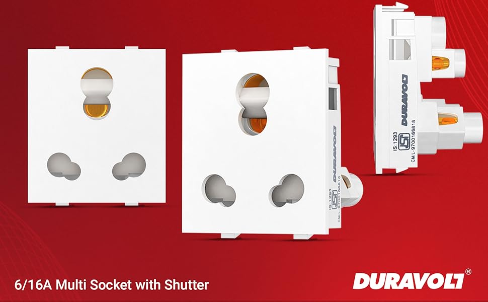 The DURAVOLT Dlite 6/16A Modular Electrical Multi Socket is engineered for safety and durability, featuring a polycarbonate body and a pack of 20 sockets. Perfect for home and office use, it ensures smooth operation and compatibility with various devices.