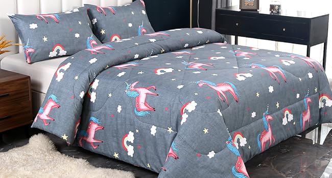 SDIII 2PC Unicorn Bedding Sheet Sets Twin Size Rainbow Sheets with Flat Fitted Sheet for Girls and Kids