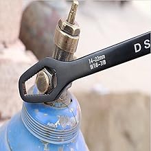 The KASTWAVE Universal Double Sided Wrench is a multifunctional tool designed for DIY machine and auto maintenance. Made from durable chrome vanadium steel with a polished finish, it features a self-tightening mechanism and an adjustable range of 8-22 mm, making it ideal for various applications. Weighing only 250 g and measuring 28 x 3 x 1 cm, this wrench is both lightweight and compact, perfect for your toolbox or emergency kit.