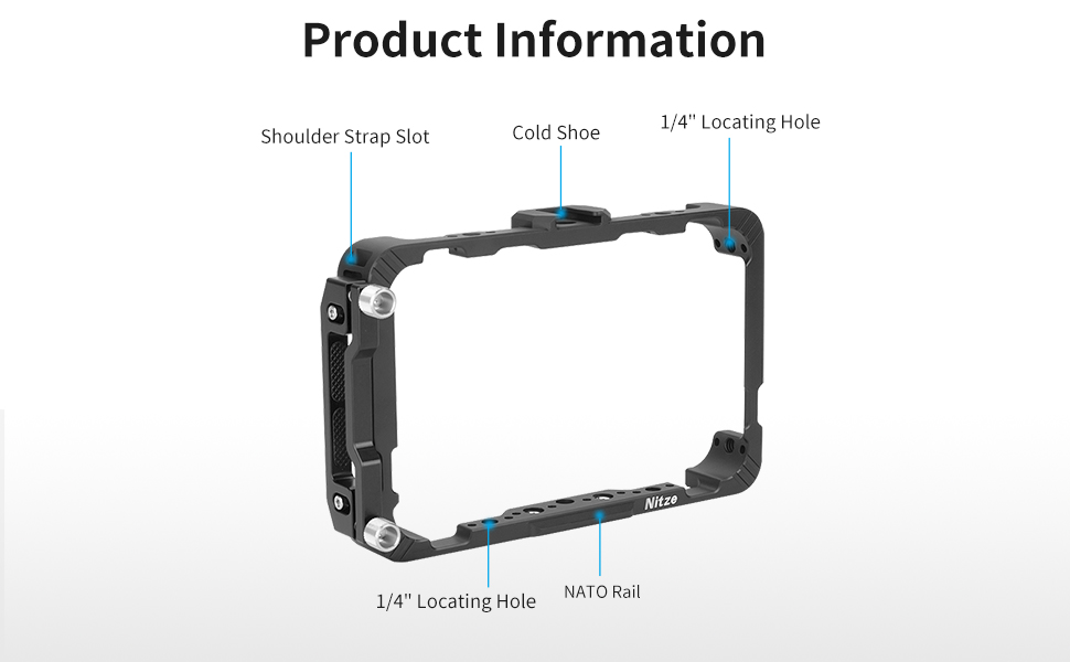 The Nitze JT-A02A Cage is a precision-engineered accessory cage compatible with Atomos Ninja, Shinobi, and Zato Connect monitors. Featuring dual 1/4” locking screws, a built-in NATO rail, cold shoe mount, and HDMI cable clamp, it ensures secure mounting, rapid accessory attachment, and cable protection. Lightweight at 146g, it’s designed for professional videographers seeking a streamlined, expandable monitor rig.