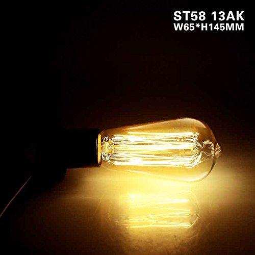 Product Type: Incandescent Bulbs Average holiday life (hrs): 6000hrs Certification: CE, FCC, RoHS, CCC Luminous Flux: 300 Application: Indoor Power: 40 W Colour Temperature (K): 3000 Base Material: Brass Glass Finish: Clear Power Tolerance: 1% Color Rendering Index (CRI): 100 Colour Temperature: Warm White 2700 to 3500 K) Voltage: 220 V Application: Interior Application1: Edison light bulb Application2: Retro Edison Screw Directions for use:Living rooms, bedrooms, living rooms, home, cafe, restaurant, commercial, engineering, indoor and outdoor, professional, etc.