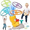 The AM ANNA Flying Disc Toy Rocket Launcher is a battery-free, kid-powered outdoor game that launches discs up to 40 feet. Designed for ages 3-12+, it includes 8 flying discs, 2 catch nets, goggles, and a stomp-activated launcher shaped like a puppy. This durable, safe toy promotes STEM learning through hands-on mechanics, enhances hand-eye coordination, and encourages active, social play in the backyard or park.