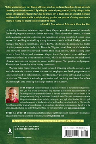 IN THIS GROUNDBREAKING BOOK, education expert Tony Wagner provides a powerful rationale for developing an innovation-driven economy. He explores what parents, teachers, and employers must do to develop the capacities of young people to become innovators. In profiling compelling young American innovators such as Kirk Phelps, product manager for Apple s first iPhone, and Jodie Wu, who founded a company that builds bicycle-powered maize shellers in Tanzania, Wagner reveals how the adults in their lives nurtured their creativity and sparked their imaginations, while teaching them to learn from failures and persevere. Wagner identifies a pattern a childhood of creative play leads to deep-seated interests, which in adolescence and adulthood blossom into a deeper purpose for career and life goals. Play, passion, and purpose: These are the forces that drive young innovators. Wagner shows how we can apply this knowledge as educators and what parents can do to compensate for poor schooling. He takes readers into the most forward-thinking schools, colleges, and workplaces in the country, where teachers and employers are developing cultures of innovation based on collaboration, interdisciplinary problem-solving, and intrinsic motivation. The result is a timely, provocative, and inspiring manifesto that will change how we look at our schools and workplaces, and provide us with a road map for creating the change makers of tomorrow. "Creating Innovators "will feature its own innovative elements: more than sixty original videos that expand on key ideas in the book through interviews with young innovators, teachers, writers, CEOs, and entrepreneurs, including Thomas Friedman, Dean Kamen, and Annmarie Neal. Produced by filmmaker Robert A. Compton, the videos are embedded into the ebook edition in video-enabled eReaders and accessible in this print edition via QR codes placed throughout the chapters or via www.creatinginnovators.com.