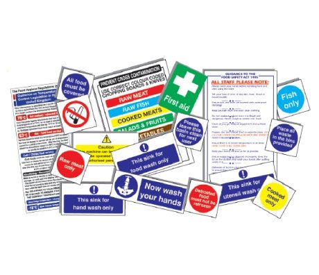 Guidance Food Safety Act 330 x 200mm Chopping Boards/Knives 160 x 230mm Cook Chill Guidelines 300 x 200mm Now Wash Your Hands 90 x 230mm Sink for Food Wash 100 x 200mm Sink for Utensil Wash 100 x 200mm Sink for Hand Wash 100 x 200mm Raw Meat Only 100 x 100mm Cooked Meat Only 100 x 100mm Defrosted Food not Refrozen 100 x 100mm All Food Must be Covered 100 x 100mm Waste in Bins Provided 100 x 100mm Fish Only 100 x 100mm Leave Basin Clear 100 x 100mm No Smoking Symbol 100 x 100mm Dangerous Machine 100 x 200mm First Aid symbol 150 x 100mm