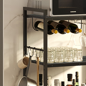 TUTOTAKBar Cart, Serving Cart for Home, Microwave Cart, Drink Cart, Mobile Kitchen Shelf with Wine Rack and Glass Holder, Rolling Beverage Cart BC01BK030The Forest Stewardship Council