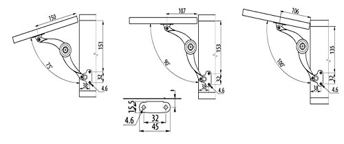 4 x Mprofi Panel Hinged Flap Fitting Hochschwenkbesc Carousel Panel Support Folding Holder Lift Fitting Kitchen Accessory Adjustable GD062