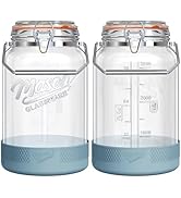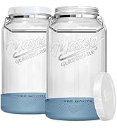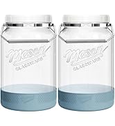 This 2-pack of 32 oz (1 L) classic clear glass milk bottles features a silicone pour spout and 100% airtight lids with silicone gaskets to prevent leaks and keep liquids fresh. Made from thick, BPA-free glass, these dishwasher- and fridge-safe bottles include dual measurement markings in milliliters and ounces for precise tracking. Their slim, space-saving design fits neatly in refrigerator doors, making them the perfect reusable solution for milk, juices, kombucha, and more.