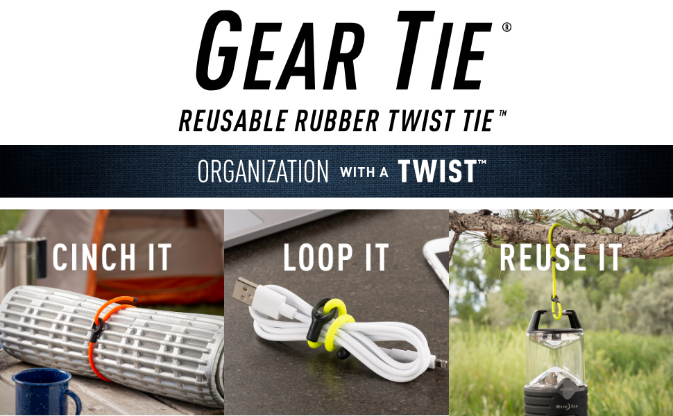 Nite Ize Gear Ties are 12-inch reusable rubber twist ties featuring a strong bendable wire core and a fixed loop for easy hanging. Designed with a durable, waterproof, and UV-resistant rubber exterior, these ties are perfect for bundling, organizing, and securing items indoors or outdoors. Available in multiple colors and sizes, they replace single-use cable ties with a sustainable, long-lasting solution trusted by professionals and DIY enthusiasts alike.