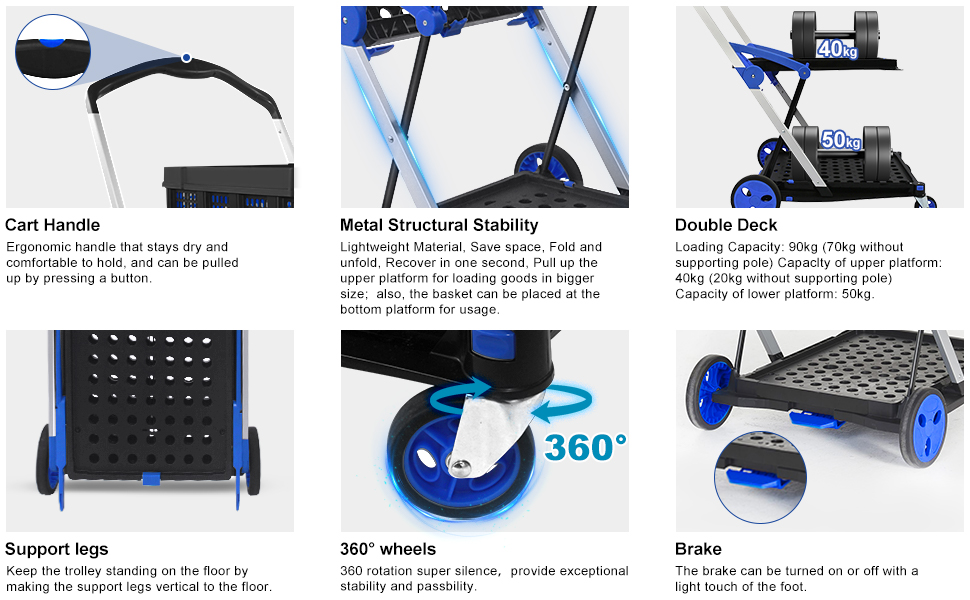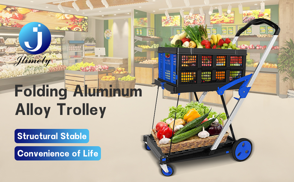 Folding Shopping Cart 2 Tier Collapsible Trolley With Removable Crate | Desertcart OMAN