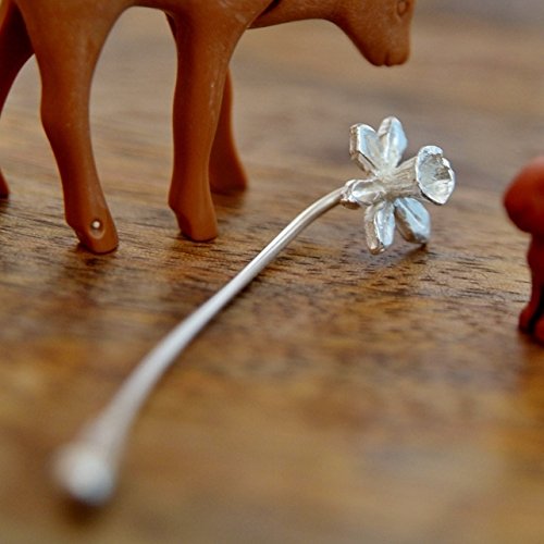Silver Daffodil Brooch Pin. This daffodil pin is handmade in silver. It can be used as a simple pin brooch, a hat pin, or even as a hair accessory. The flower measures 13mm across and the pin is approx 65mm long with a simple silver stopper that slots over the end of the pin to keep in place. The daffodil is the national flower of my birthplace, Wales and is also beloved of China where it is seen as a symbol of good fortune. Part of a collection, with matching items. Gift-boxed and sent out within 2 working days of payment received.