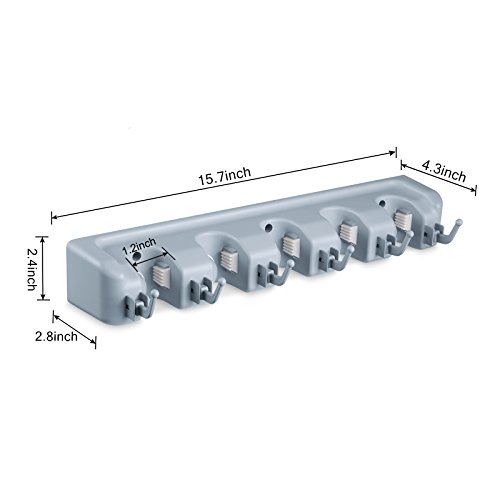 Mount on the Wall in Your Home's Kitchen or Garage Wall Mounted Mop Broom Holder organizer There are 5 ball slots and 6 hooksHooks can be folded up and out of the way. Use in the laundry, garage, garden, utility room, offices, and more. Plastic Mop, Broom, and Long-Handled Tool or Sports Equipment Holder System Installation Method: Choose where you want it positioned, then check to make sure you have it level, then take a pencil and mark the wall where the six screw holes are. Select the location you want to follow, and then take the pencil positioning, mark the location of six holes drilling, install the anchor place the organizer back in position and screw into the anchors. Package Included: 1 X Wall Organizer Screws(6 PCS)