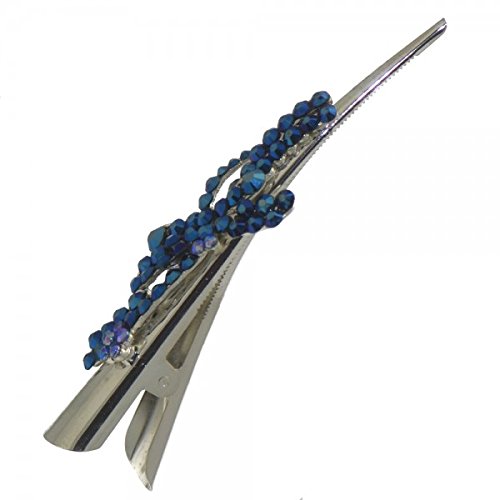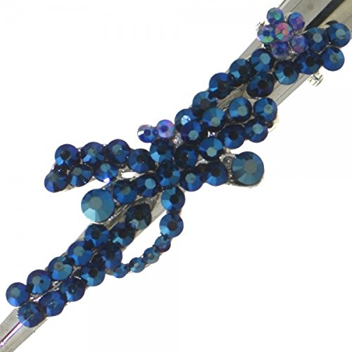 li>polished silver tone beak hair clip. li>encrusted cobalt blue rhinestone dragonfly and flower. li>approx length: Â 13cm (5.2'). li>free organza gift bag.