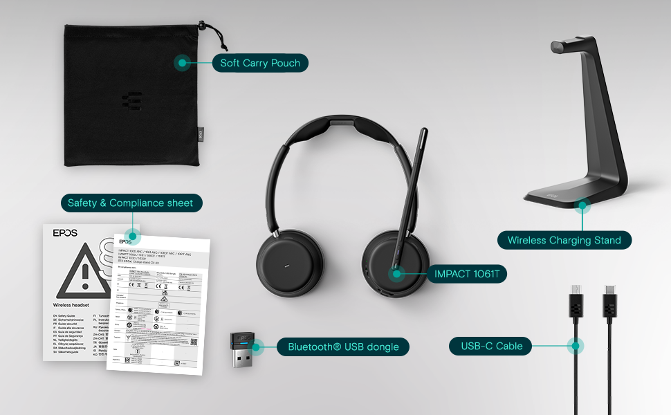 The EPOS Impact 1061T headset features advanced Hybrid ANC and AI microphone technology for superior voice clarity, ergonomic design for all-day comfort, super wideband audio for lifelike sound, user-friendly controls, and multipoint Bluetooth connectivity ensuring stable, flexible use across devices.