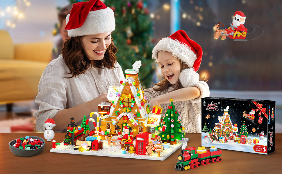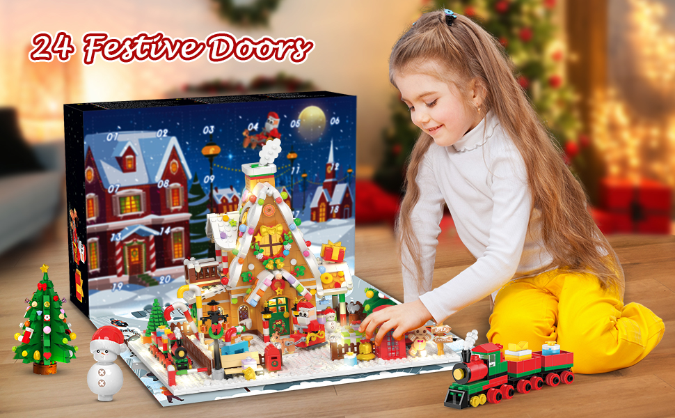 INSOONAdvent Calendar 2024 Christmas Gingerbread House Kit with LED Light, 1714 Pieces Countdown Mini Kit, Christmas Tree Gift for Adults, Teens, Children, Girls, Boys from 8 Years