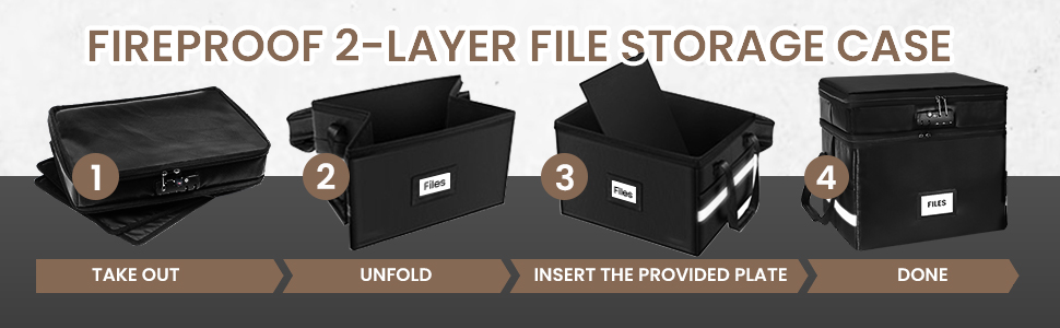 The ALLSOLA Document Box is a modern, collapsible file organizer crafted from fireproof and water-resistant dual-layer silicone-coated fiberglass, capable of withstanding temperatures up to 2000℉. Featuring a spacious multi-pocket interior with dedicated slots for passports, cards, USBs, and legal/letter files, it combines portability with robust security via a combination lock and double zipper design. Its reflective strip enhances visibility, making it an essential, stylish safeguard for your critical documents at home, office, or on the go.