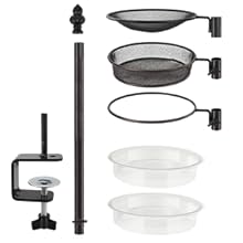 This sturdy, rust-resistant steel bird feeder features three 360° adjustable trays that double as a flower pot stand. Designed for easy, tool-free assembly on railings up to 2.6" thick, it includes removable trays and a free water bowl for effortless cleaning and bird care. Perfect for adding life and charm to your deck, balcony, or patio.
