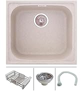 The Zinzer Quartz Sink is a premium black granite composite kitchen sink measuring 24×18 inches with a deep 8-inch bowl. It features UV protection to prevent fading, scratch and heat resistance for durability, and a noise-reducing thick granite build for quieter use. Designed for heavy-duty Indian kitchen use, it includes essential accessories like waste coupling, drain pipe, and vegetable basket. Made in India with a 5-year warranty, it combines style, hygiene, and functionality in one robust package.